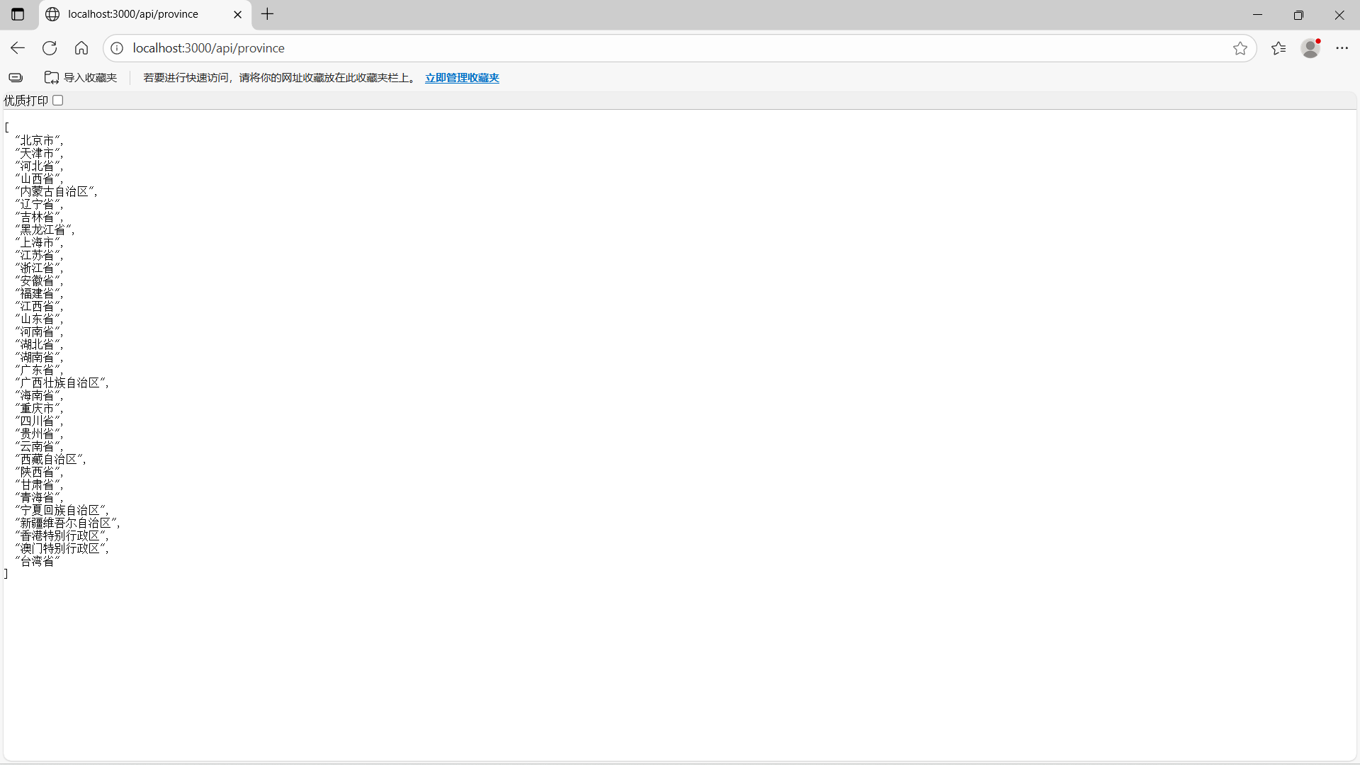 注意:此时的端口号不再是http://localhost:3000/,而是http://localhost:3000/api/province