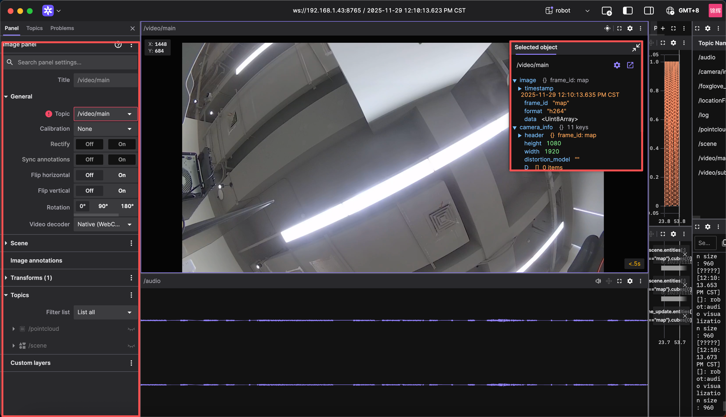 视频是机器人感知系统最核心的模块之一。本篇将讲解 Foxglove 如何处理摄像头视频流,包括编码格式、消息封装、bridge 转发、前端渲染机制,并对常见问题(如卡顿、颜色不对)给出解决方案。