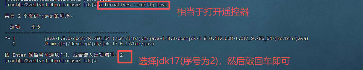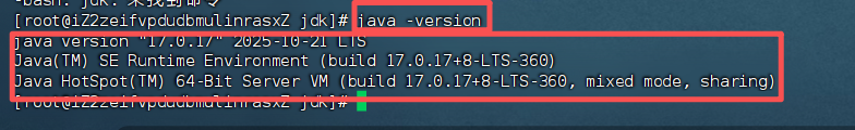 ②/home/jhj/develop/jdk/jdk-17.0.17/bin/java和/home/jhj/develop/jdk/jdk-17.0.17/bin/javac是我们刚才解压的jdk17