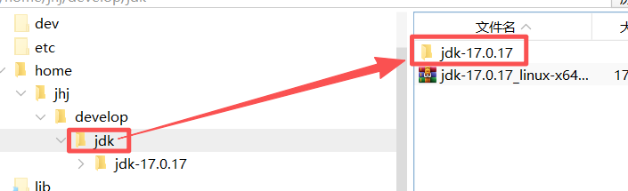 4.将jdk17的压缩包,上传到/home/jhj/develop/jdk目录下,并解压