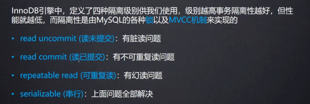 **读未提交:**通常不加锁,通过直接读最新数据实现,存在脏读、幻读等问题。