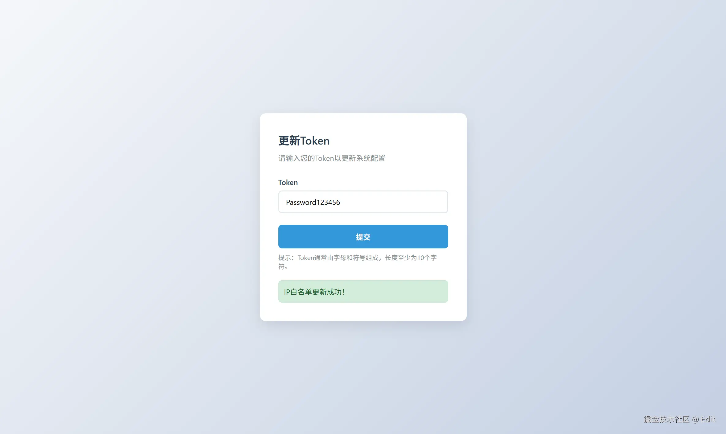 所以只要我其实只要一个输入框,我输入密码,后端鉴权成功后把我的IP加入白名单并且清除其他白名单IP即可。