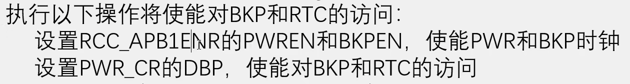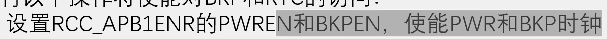 第一步开启BKP时钟,第二步使用PWR函数使能对BKP和RTC的访问。