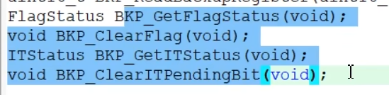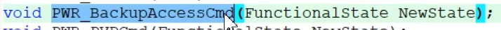 我们还需要关注一下备份寄存器访问使能的函数,需要开启BKP。因为BKP是在备份区域,备份区域一开始是写保护状态,需要调用这个函数,才能解除写保护。