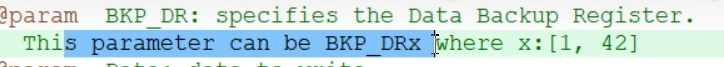 第一个参数BKP_DR这个参数可以是BKP_DRx,其中x可以是1-42的数字。当然只有大容量和互联型才有DR42,我们的中容量只有DR1-10。