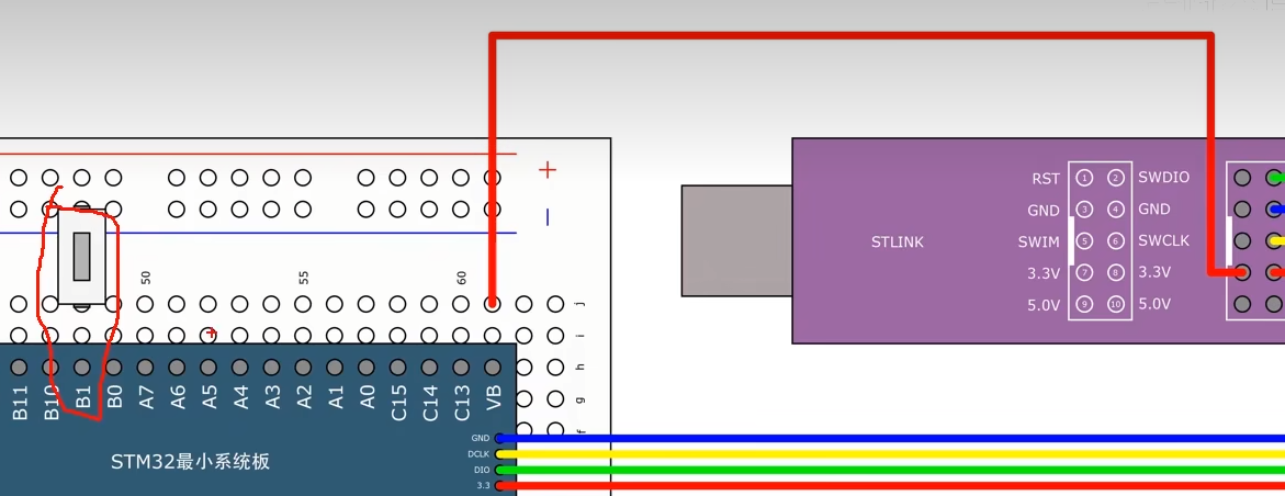 按键用于控制,然后VB接在STlink的3.3V引出角。