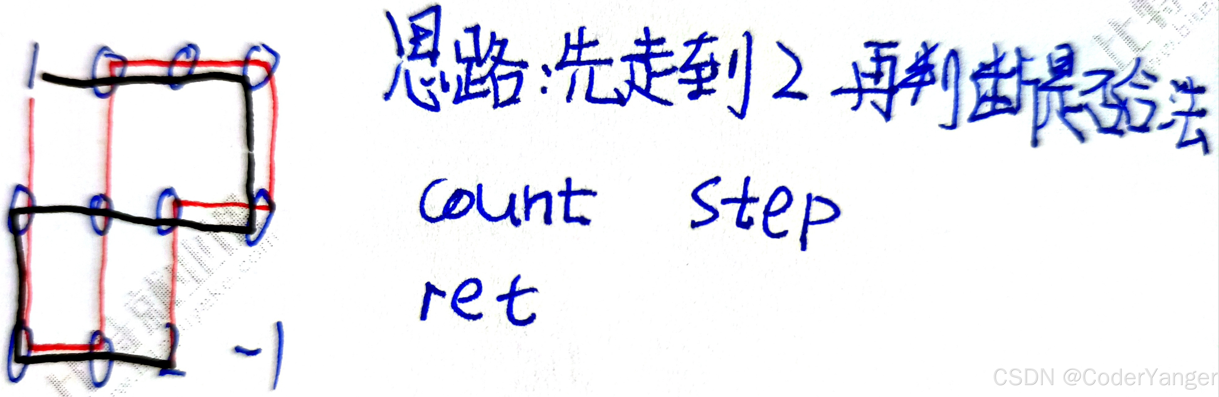 //自己写的,注释处是找的错误:到2就返回+绕过障碍-1