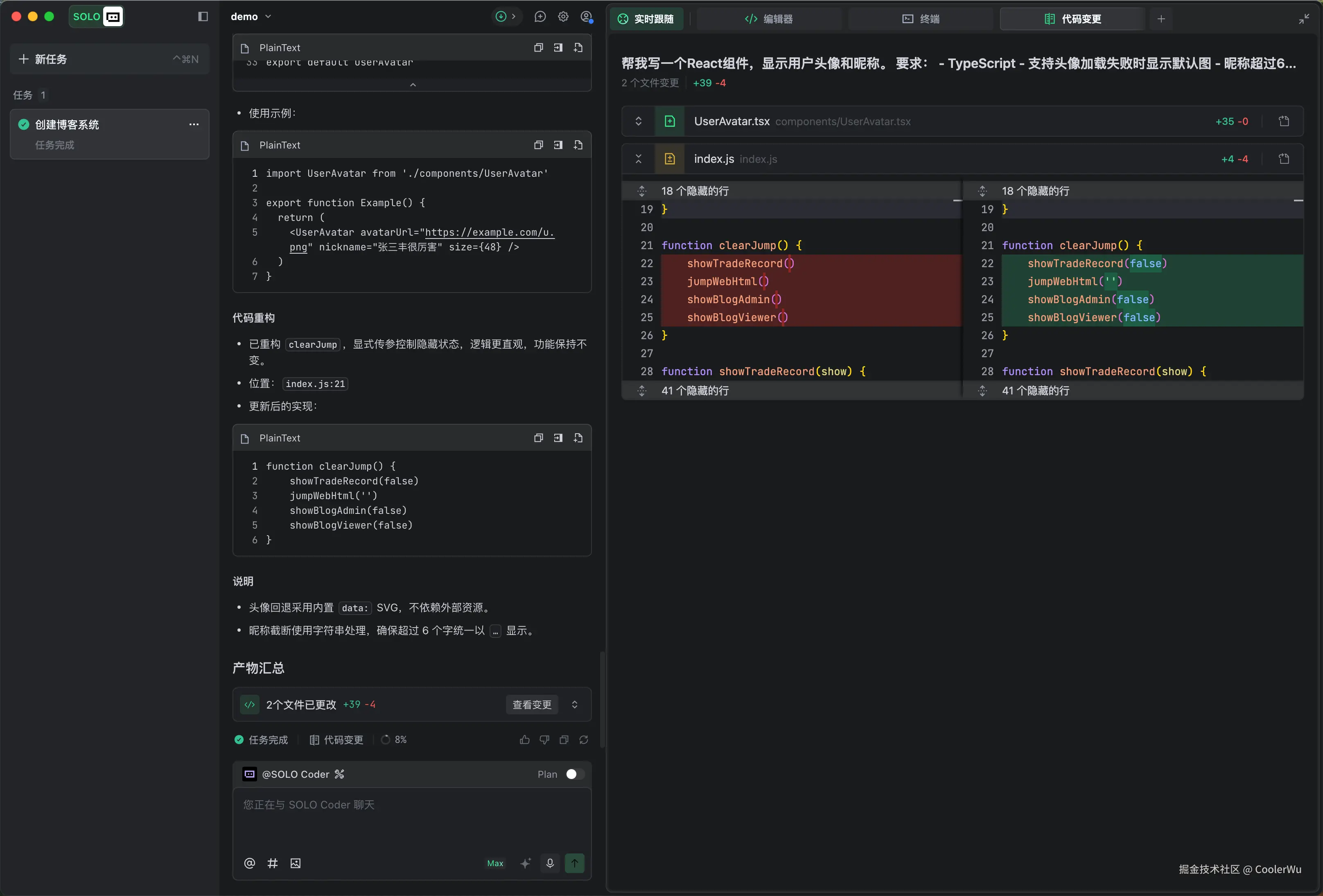 我第一次让Solo帮我重构一个老项目,它给我改了40多个文件,我花了两天才理清楚它改了什么。