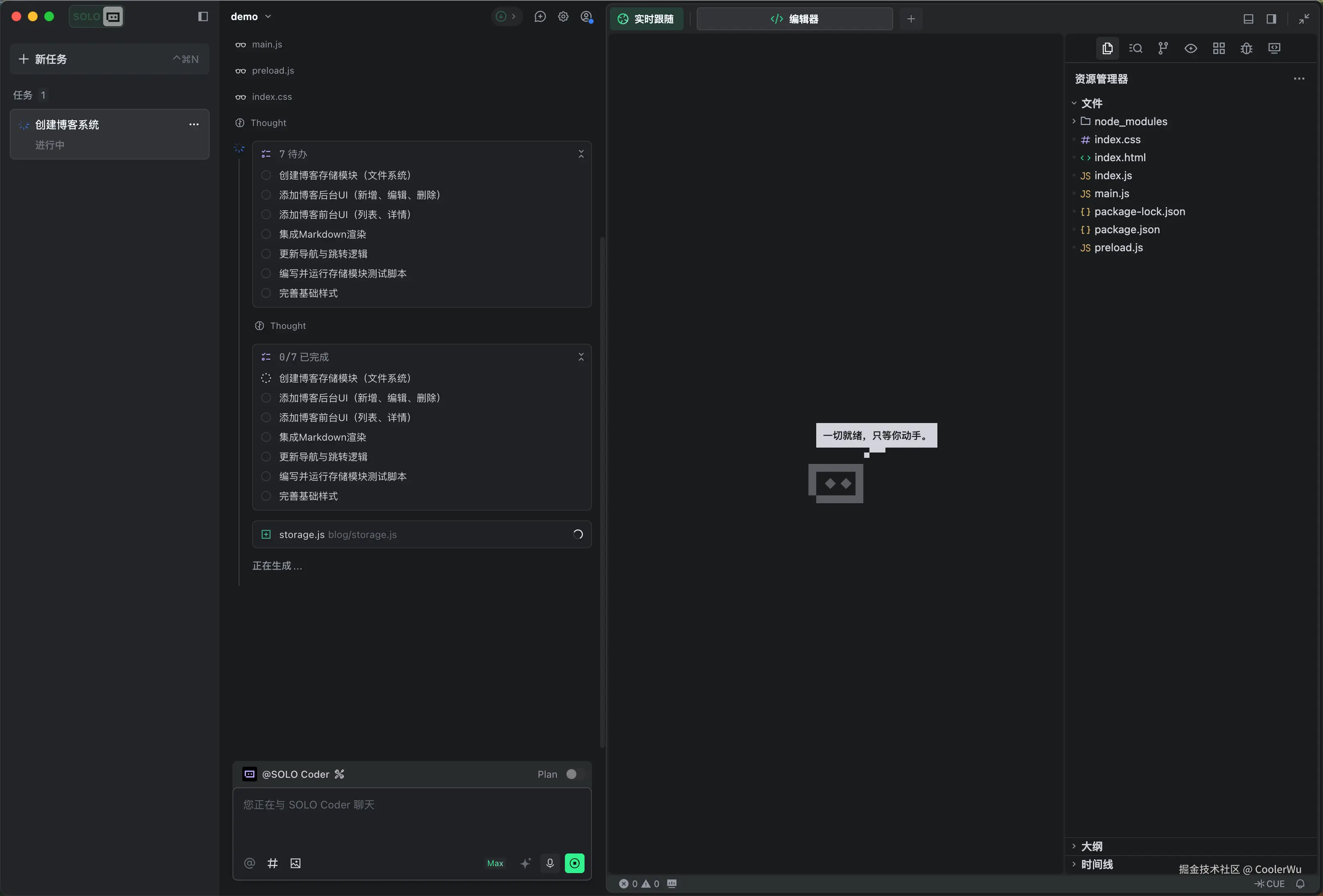 我是怎么踩坑的Solo刚全量开放那天,我兴冲冲地打开它,说了句"帮我做个博客系统"。