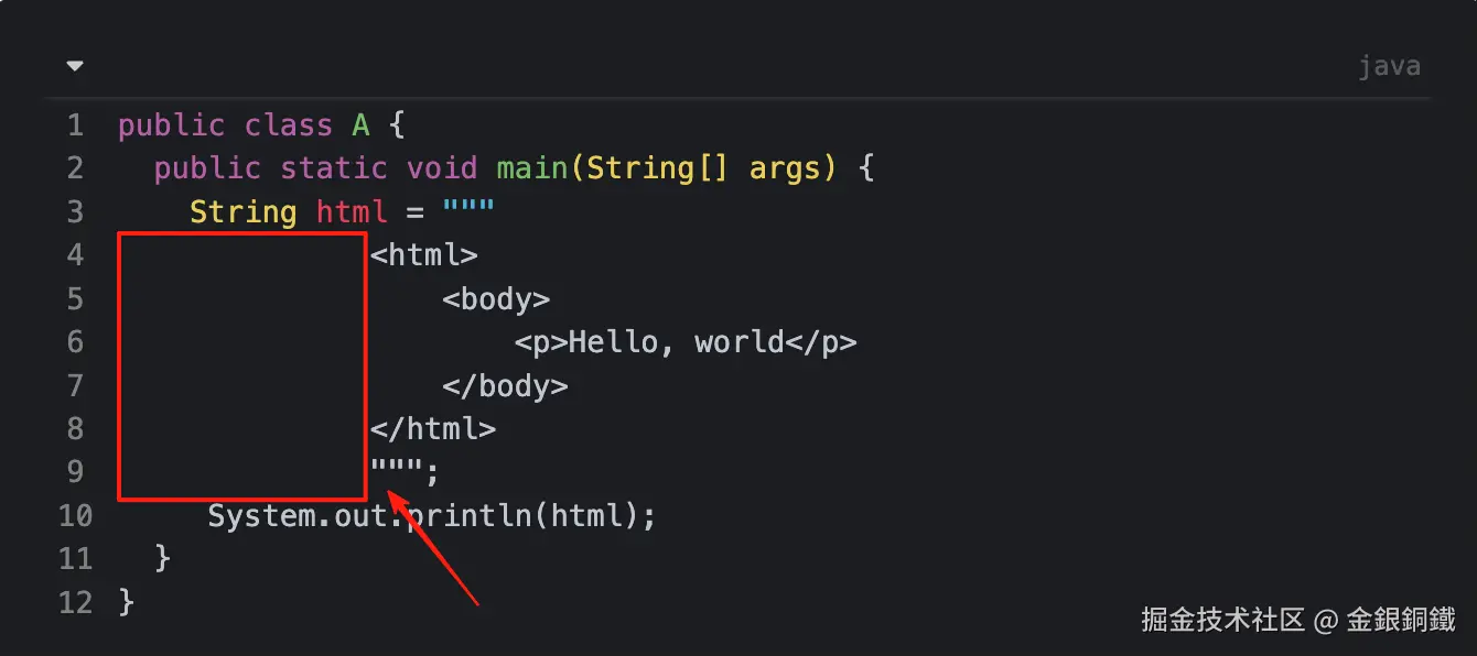 JDK 15 正式支持文本块(Text Blocks),JEP 378: Text Blocks 一文中有详细的描述,有兴趣的读者可以读一读。于是,原先这样的代码 ⬇️