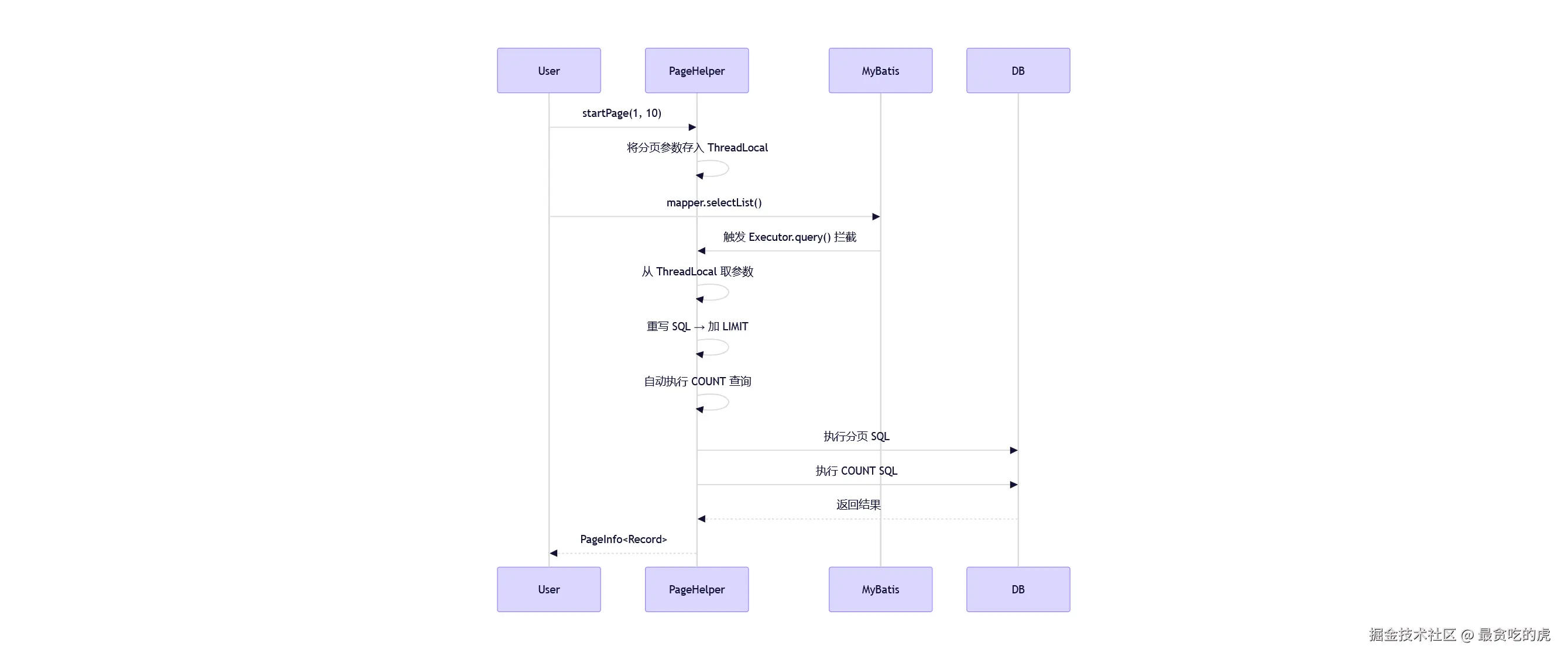 PageHelper 通过拦截 MyBatis 的查询,在 SQL 末尾自动加上 limit/offset 以及 count 语句。