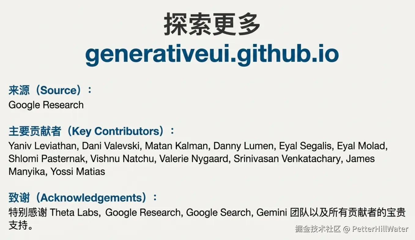尽管目前仍处于早期阶段且存在局限,但我们坚信生成式UI代表着一种全新的人机交互范式,它仅仅是迈向一个更广阔未来的第一步。白皮书的核心愿景可以概括为: