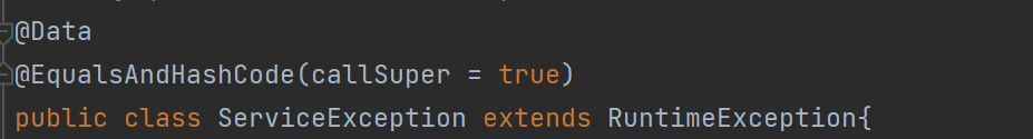 4.定义异常类:此项目按分层来定义异常就定义两种异常controller层和service层的异常,注意我们需要用getset方法加上@Data后他会重写equals和hashcode方法,但是如果他是继承于父类,此时那两个方法是不带他父类的属性的,后续可能会出现一些问题,所以我们需要加上@EqualsAndHashCode,即可带上父类的属性