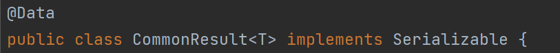 5.定义统一结果返回的类,建立common.pojo,建立一个统一结果返回的泛型类带上(int code,String msg,T data)写一些静态泛型方法来快速构建统一放回结果的对象,因为他是需要在http协议中来传输需要进行各种序列化,我们可以让他实现Serializable接口,使得 CommonResult<T> 对象可以被序列化为多种格式,如 JSON或XML,⽅便⽹络传输。