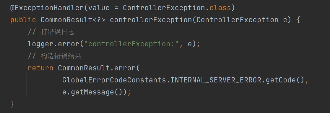 进行统一异常捕获的时候,我们方便打印日志,两种异常类定位是哪一层发生异常,状态码来定位同一层的不同的业务错误逻辑,方便我们调试,用global中错误的状态码返回给前端(前端也方便接收处理一样的错误码),前面细的异常状态码是用于定位问题(给自定义异常类属性赋值使用,并且区分同一个异常不同逻辑错误),后面global异常状态码是返回给前端的 。