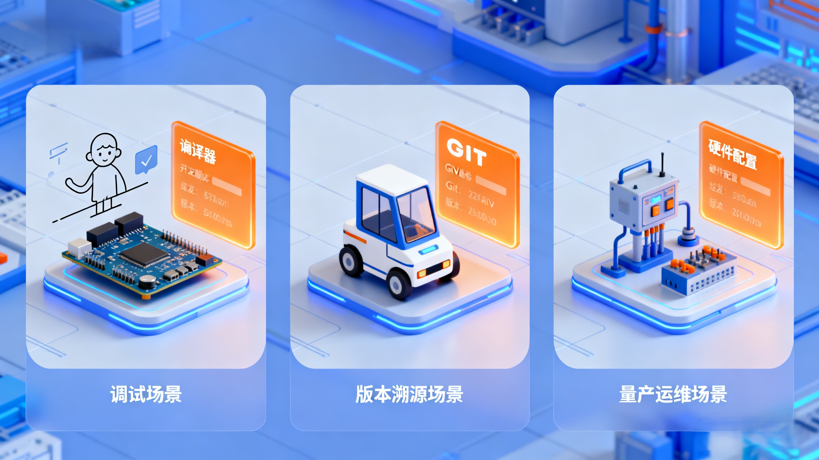 工业控制、汽车电子等领域对软件版本有严格的合规要求,编译进的版本信息、编译时间能形成完整的 "软件追溯链",满足审计要求。