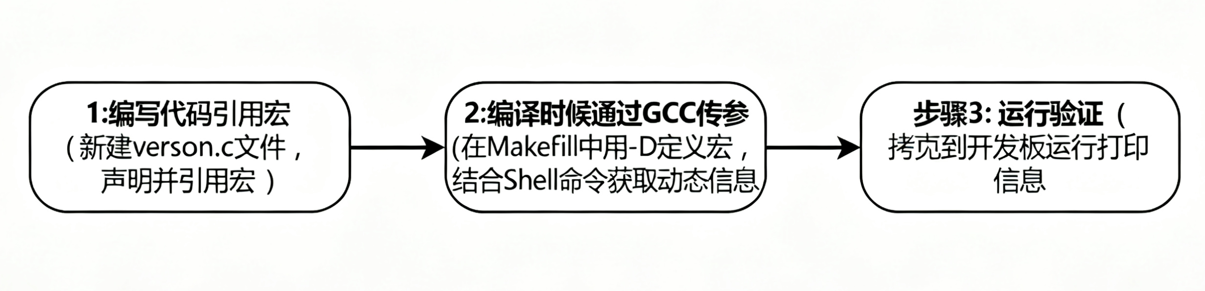 嵌入式 Linux 中,将信息编译进程序的核心思路是 "通过宏定义传递信息,在代码中引用这些宏,最终链接到可执行文件中",主要有两种方法,适合不同场景。