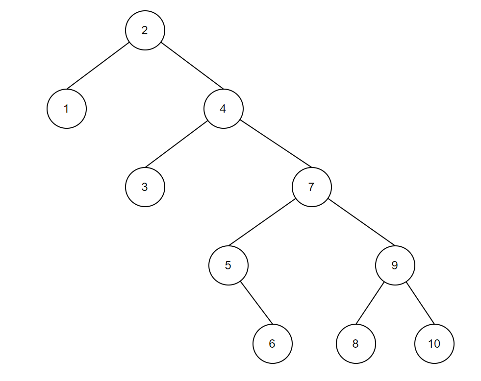 二叉搜索树的插入严格遵循对于每一个根节点,其左子树都小于根节点,右子树都大于根节点: