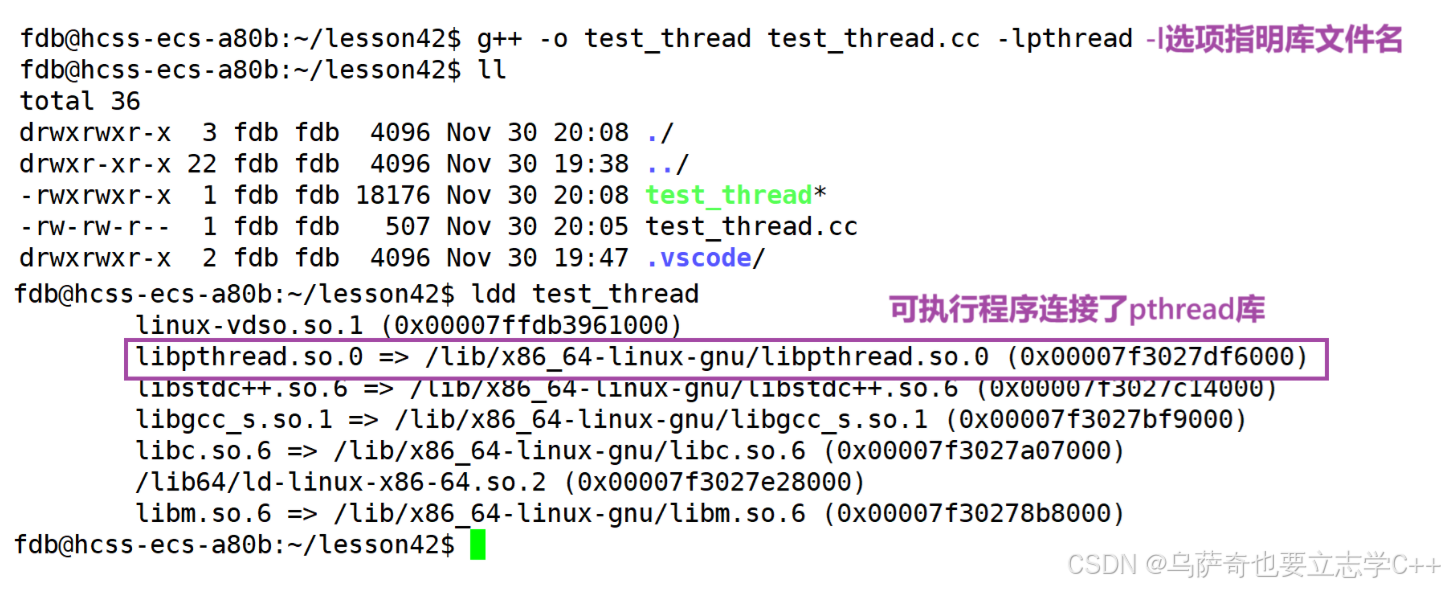 但是这时会出现一个问题,因为linux只有创建轻量级进程的系统调用,有一些没学过linux的用户是不知道轻量级进程的概念的,他们只知道进程和线程,所以linux对上封装了一套pthread库,也叫做原生线程库(它和linux内核是会一直绑定在一起的),包含一整套线程接口供用户使用。
