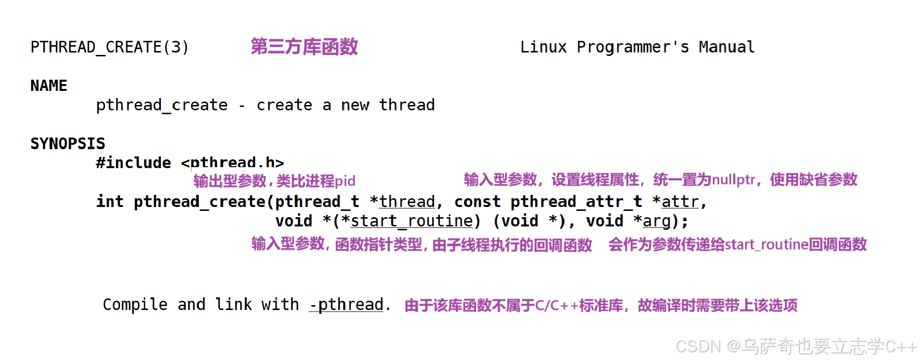先看一个创建线程的库函数,我们先照葫芦画瓢试用一下,在线程控制章节再细讲。