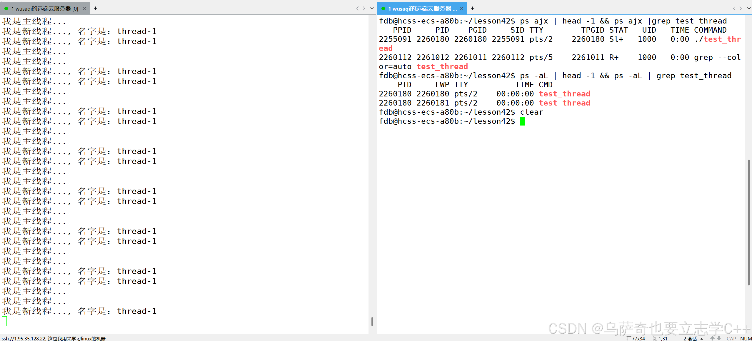 在linux中,用LWP(Light Weight Process)标识不同的轻量级进程,ps -aL 是查看进程LWP的指令,我们可以看到,一个进程中的所有线程的pid的相同的,进程中不同的线程有不同的LWP,其中主线程和进程pid相同,所以实际上OS调度只看LWP,但是原来不是说CPU是看pid的吗?其实这两者并不冲突,因为以前我们的进程只有一个执行流,所以LWP本身就等于pid,当一个进程有多个执行流时,进程pid和主执行流的LWP相等。