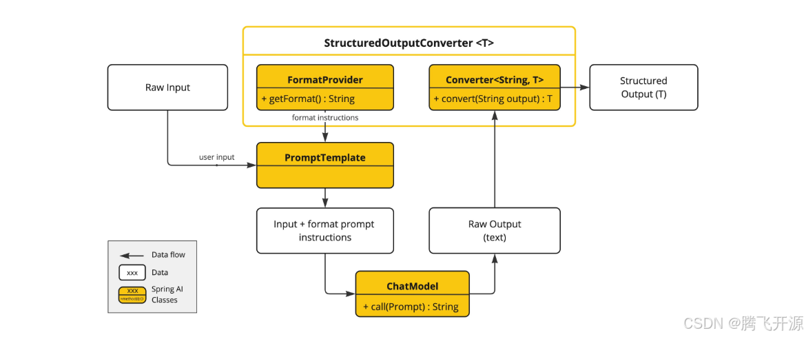 StructuredOutputConverter 接口允许您从基于文本的 AI 模型输出中获取结构化输出,例如将输出映射到 Java 类或值数组。接口定义如下: