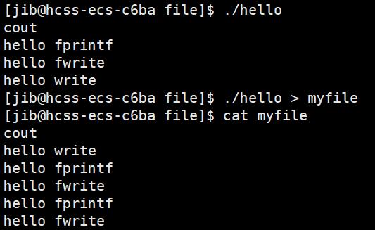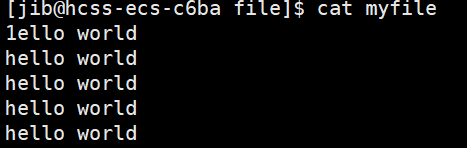 我们看到第一个hello的h被覆盖为1了,因为我之前向myfile中已经输入了许多hello world