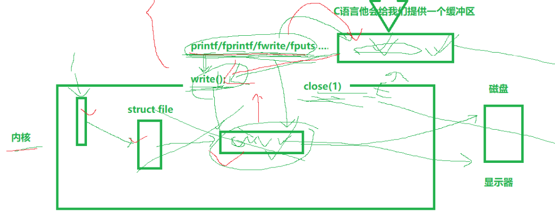 实际上,C语言的缓冲区要刷新到操作系统内核,然后再刷新系统缓冲区,目前我们认为,刷新到内核的数据就能到达硬件