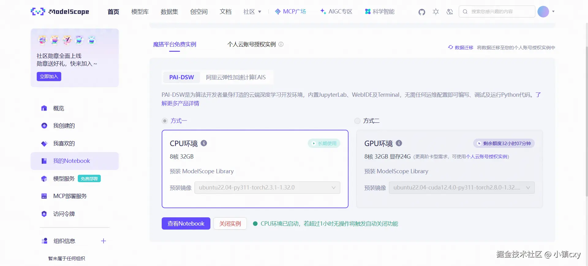 国内模型和数据集开源平台,也提供了免费的云环境实例