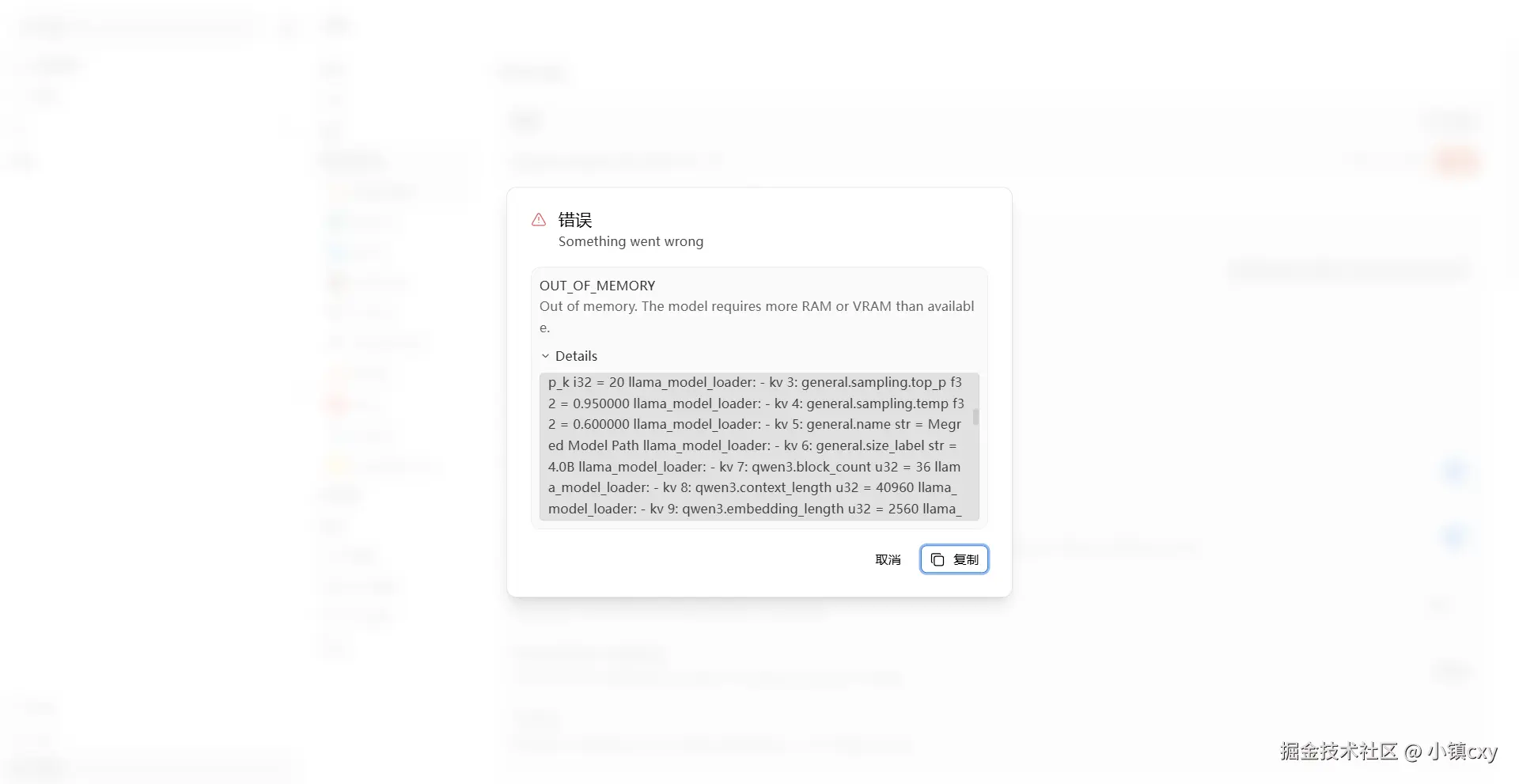点击开始,你就可以在本机电脑运行你微调的模型。然后然后然后电脑就卡机了...die