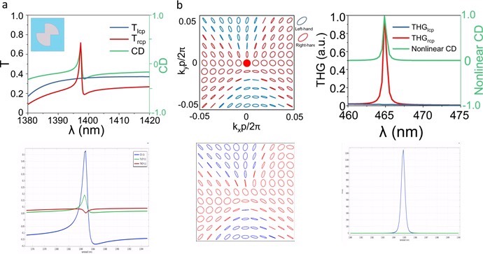 comsol三次谐波,本征手性BIC,远场偏振图,手性透射曲线,二维能带图,Q因子图,电场图,所见即所得。 大子刊nc复现,在连续介质中束缚态驱动下具有最大和可调谐手征光学响应的平面手征超表面。