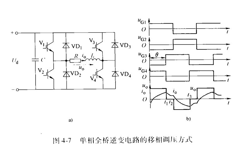 移相调压的基本思想是在全桥逆变的基础上,通过改变桥臂的导通相位来调节输出电压的幅度。这个相位差的大小直接影响输出电压的有效值。这种方法特别适合于需要平滑调压的应用场景。