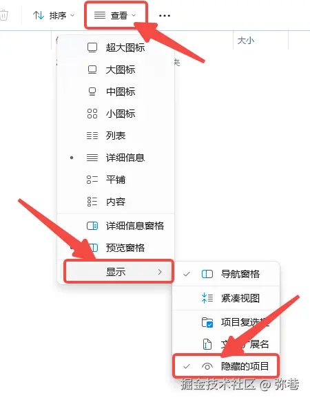 如果没有看到任何文件,看看是不是没有打开查看隐藏的项目: