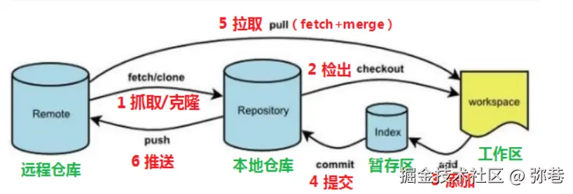 push(推送):修改完成后,需要和团队成员共享代码时,将代码推送到远程仓库