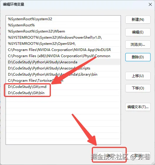 接下来就是环境变量的配置,找到Git安装的目录,复制bin和cmd文件夹的目录。