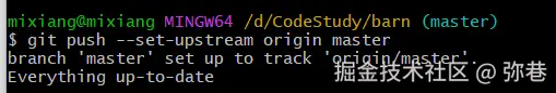 --set-upstream表示将本地分支推送到远程的同时并且建立起本地的当前分支和远端分支的关联关系,这样后面再次推送时Git就可以根据这个关联关系来判断我们想推送到远端的哪个分支上,这时就可以只输git push来完成推送操作。- 比如: