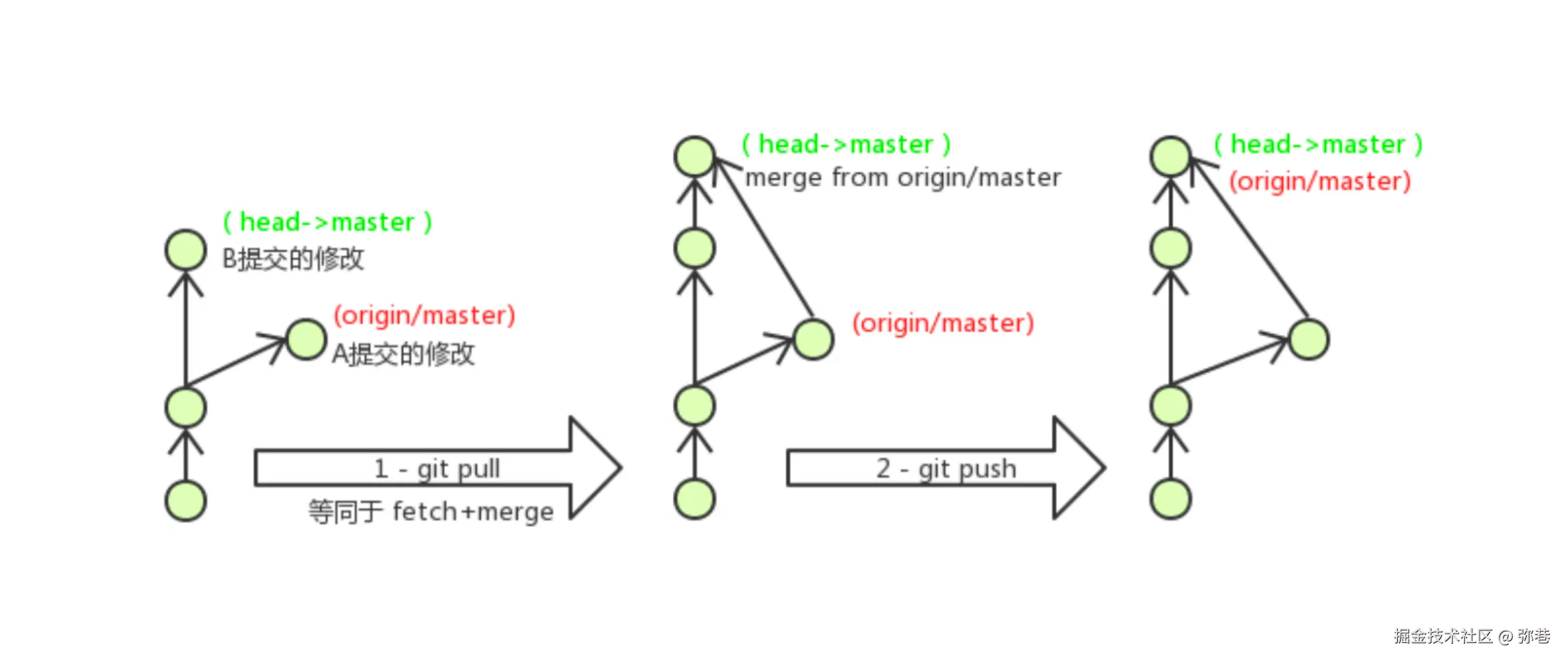 git pull [remote name] [branch name]- 拉取指令就是将远端仓库的修改拉到本地并自动进行合并,等同于fetch + merge