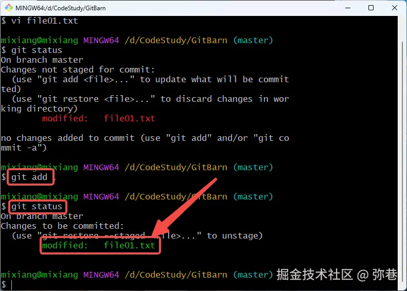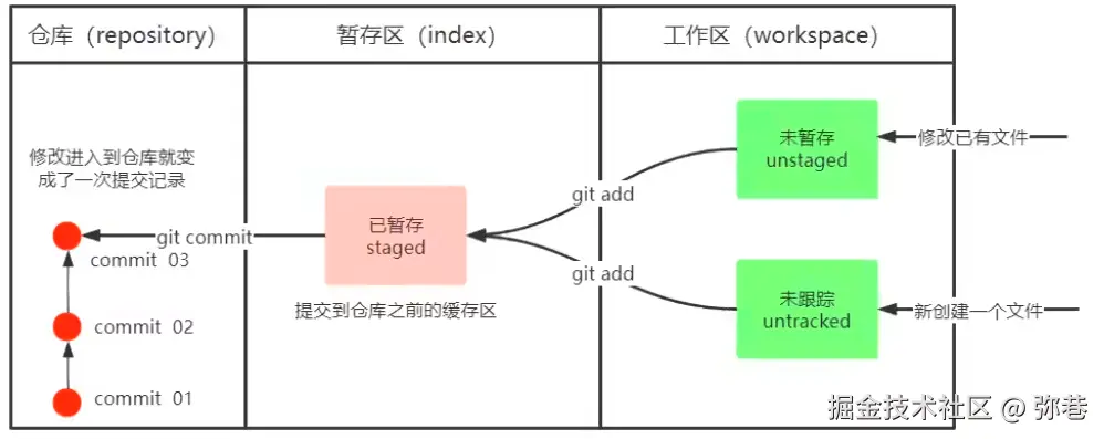 Git工作目录下对于文件的修改(包括新建、删除、更新)会存在几个状态,这些修改的状态会随着我们执行Git的命令发生变化。