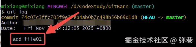 这样后面要想查看提交日志,只用输入git-log指令。另外,若想查看当前目录只需输入ll指令