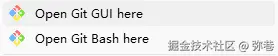其中Git GUI是Git提供的图形界面工具,Git Bash是Git提供的命令行工具