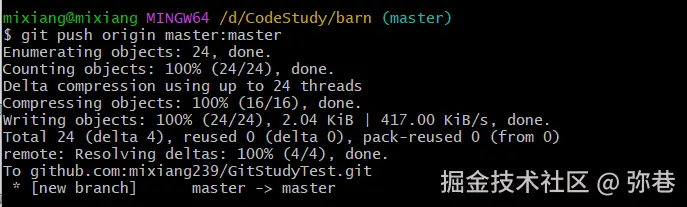 git push origin master,还是表示将本地的master分支推送到远程仓库的master分支上。