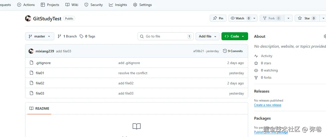 可以看到我们的远程仓库已经有内容了,并且和本地的master分支的内容一模一样。