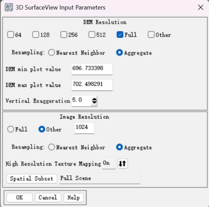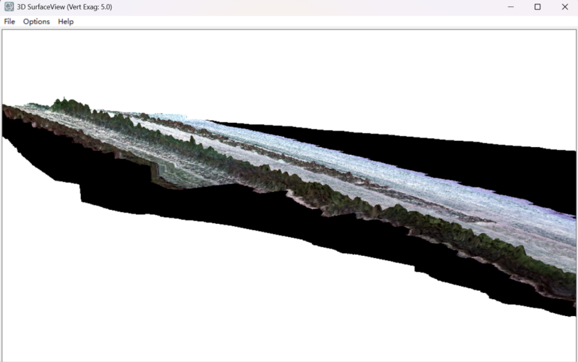 三维模型构建 :在 ENVI 的 "Toolbox" 中选择 "3D--->Terrain/3D SurfaceView" 工具,分别选择多波段影像的 RGB 波段作为纹理数据、DSM 数据作为高程数据,设置 DEM 分辨率为 256、垂直 exaggeration 为 5.0、图像分辨率为 1024,勾选 "High Resolution Texture Mapping" 以提升模型纹理清晰度。运行后即可生成具有真实纹理的三维实景模型,能够直观展示研究区域的地形起伏、作物分布等空间特征。