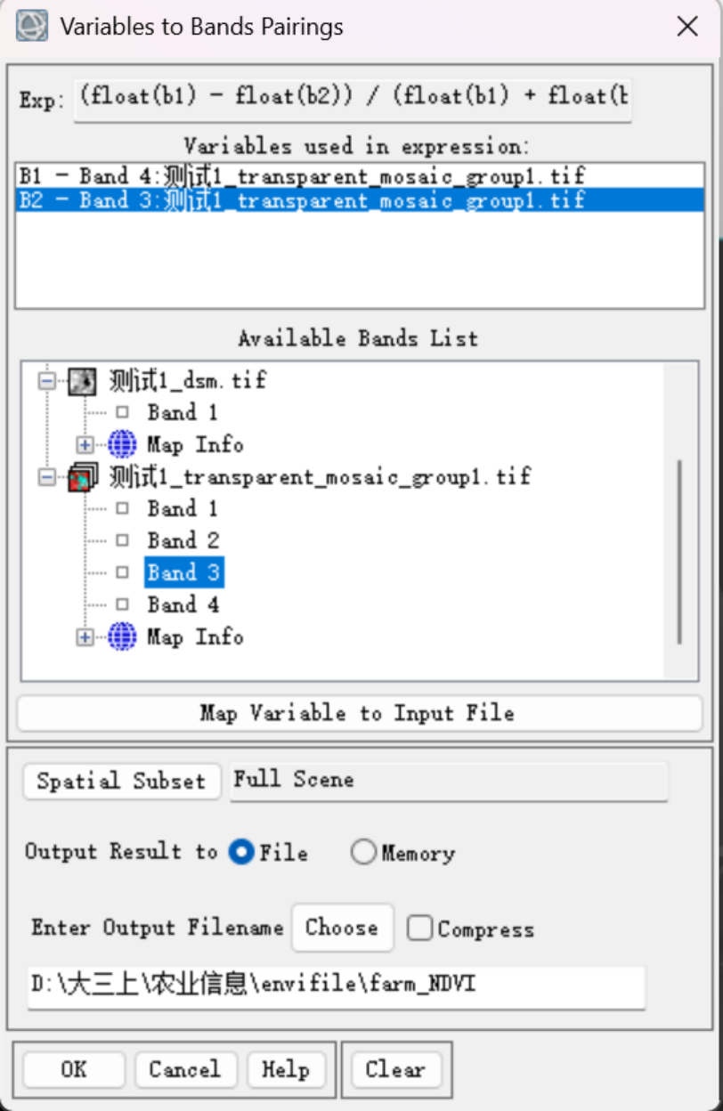 Pix4Dmapper 生成的正射影像与 DSM 文件均包含标准的地理参考信息和光谱信息,能够直接导入 ENVI 进行专业分析。ENVI 的核心作用在于挖掘影像的光谱与地形信息,通过数学运算与模型反演,将原始影像数据转化为具有实际应用意义的专题产品(如地形起伏度、植被覆盖度等)。