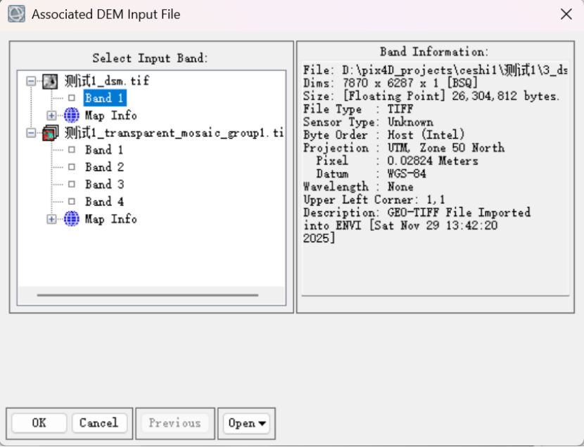 - 坐标系一致性:Pix4Dmapper 与 ENVI 处理过程中需保持坐标系一致(如本次操作统一采用 WGS 84 / UTM zone 50N),避免因坐标系不匹配导致数据错位,影响后续分析结果的准确性。
