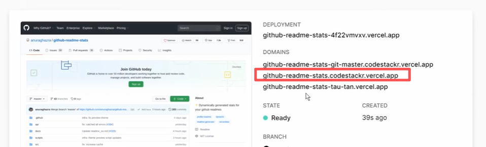 1\]. https://www.youtube.com/watch?v=n6d4KHSKqGk\&t=107s \[2\] https://github.com/anuraghazra/github-readme-stats \[3\]. https://github.com/anuraghazra/github-readme-stats/issues/4658 \[4\]. https://zhuanlan.zhihu.com/p/641263373 \[5\]. https://vercel.com/