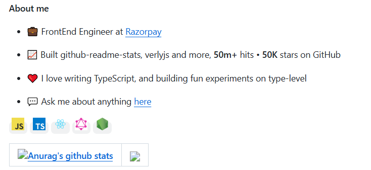 现在却统一变成了图片加载失败的icon。我以为是我哪里配置有问题,接连点开几个人的主页都有问题,最后发现连开发github-readme-stats的作者本人主页也无法避免。
