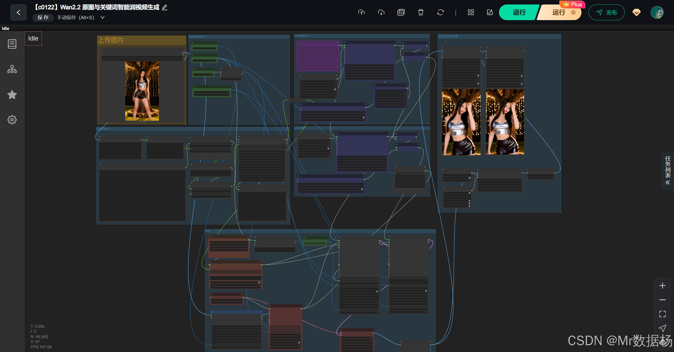 这个工作流适用于所有希望让单张图像自然地延展为短视频的创作需求。它的自动描述、关键词润色与双模型采样能在保持主体辨识度的前提下,让画面获得更细腻的动作变化。无论是做人物动效、美妆展示、剧情片段、静态摄影延展,还是对画面做风格加强,这个工作流都能形成从图到动的连续内容。其结构完整、节点健全,对新手友好,对创作者而言也能作为视频生成的高质量起点。