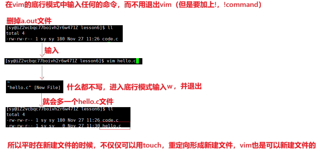 退出vim及保存文件,在【命令模式】下,按一下【:】冒号键进入【底行模式】,例如: