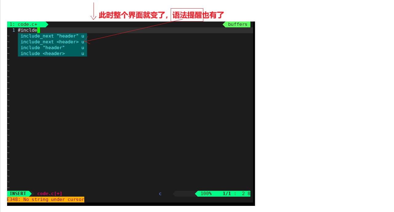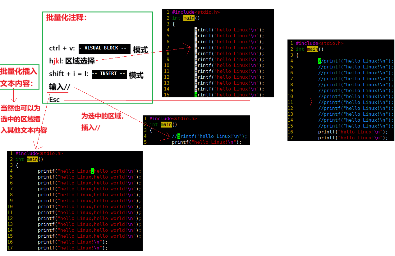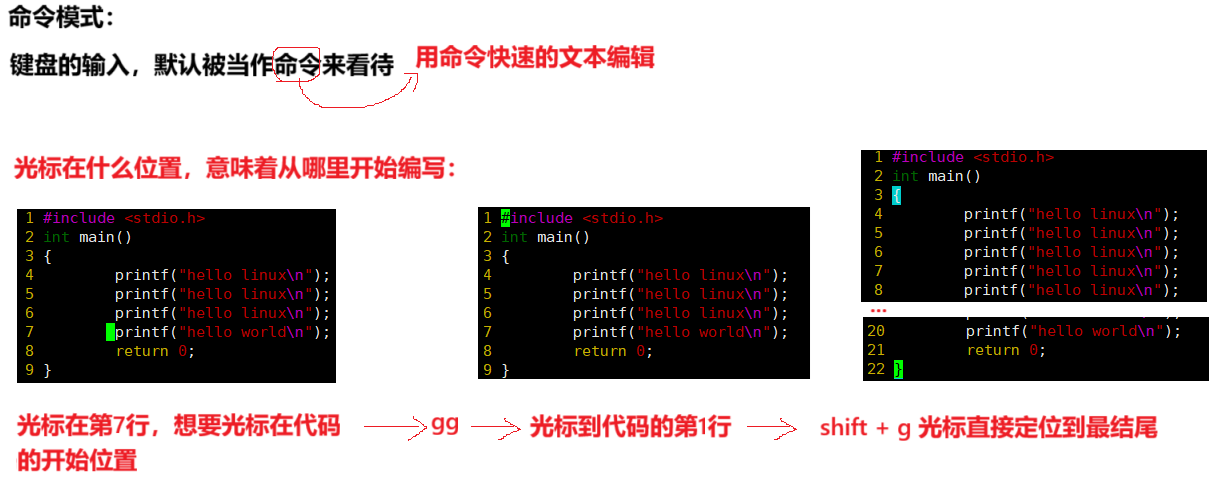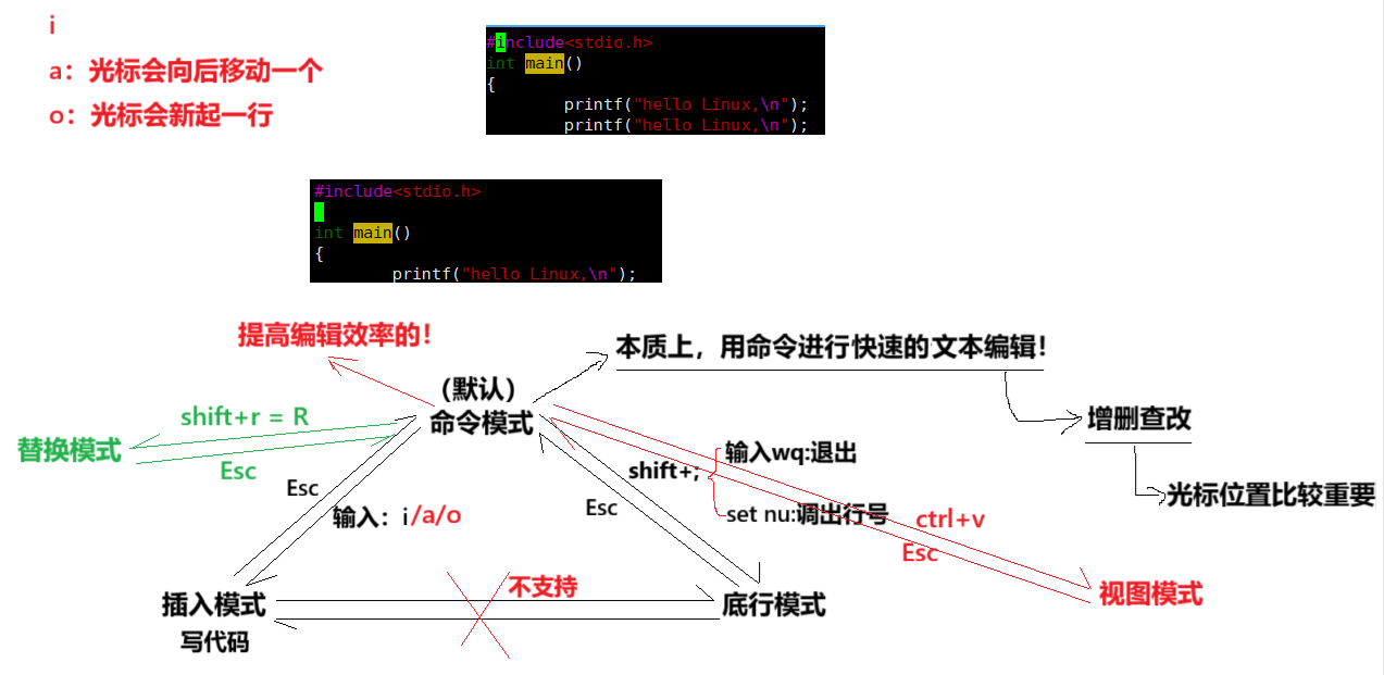 只有在插入模式下,才可以做文字的输入,按【ESC】键可回到命令模式。该模式是我们后面用的最频繁的编辑模式。